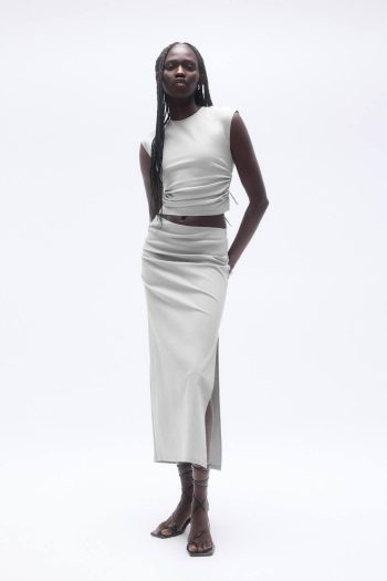 Ruffled Midi Skirt With A Slit Pale Grey | Women Midi
