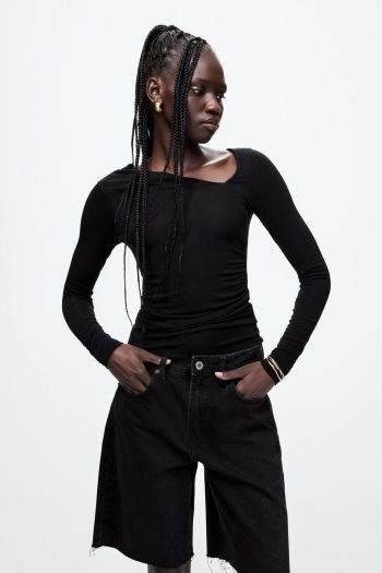 Asymmetric Long Sleeve T-Shirt Black | Women Long Sleeve