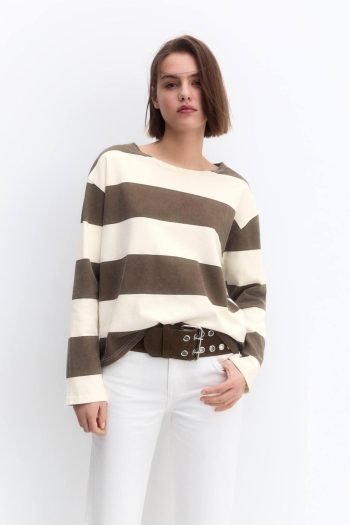 Long-Sleeve Striped T-Shirt Beige/brown | Women Long Sleeve