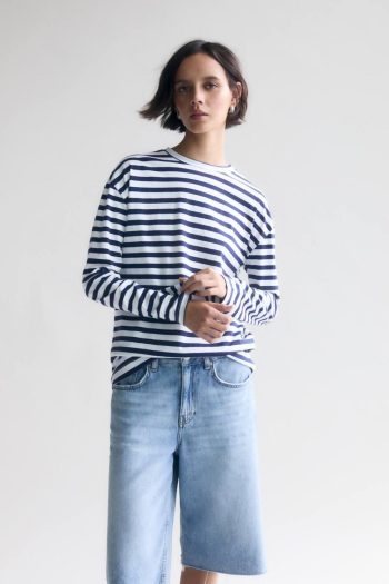 Long-Sleeve Striped T-Shirt White/navy | Women Graphics