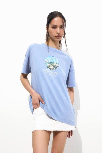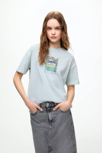 Photo Print T-Shirt Grey Blue | Women Graphics
