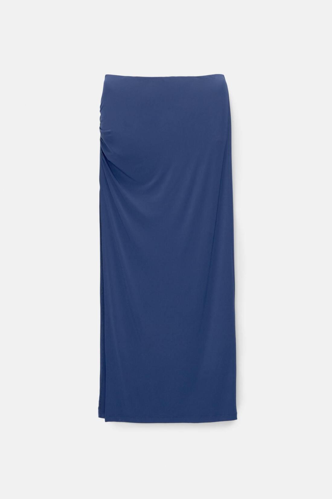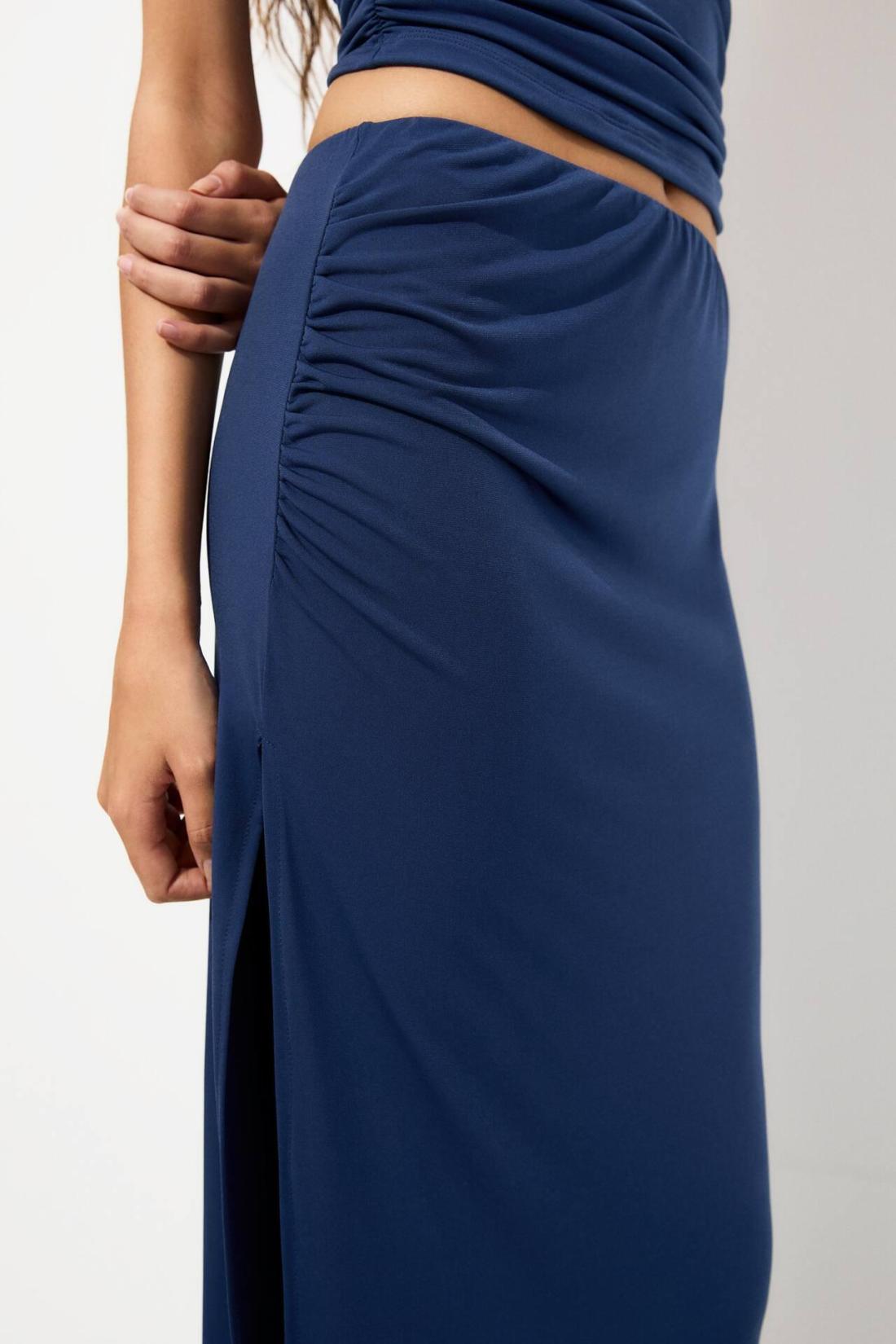 Midi Skirt With A Slit And Gathering Detail. Made Of Stretch Fabric.