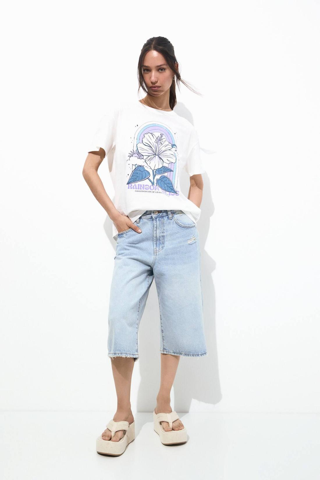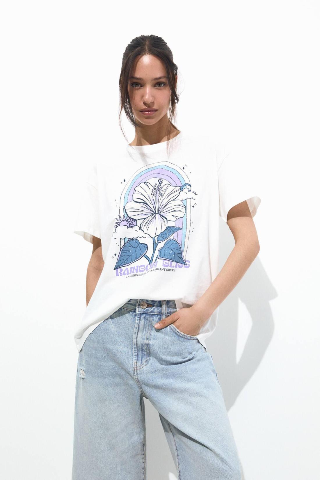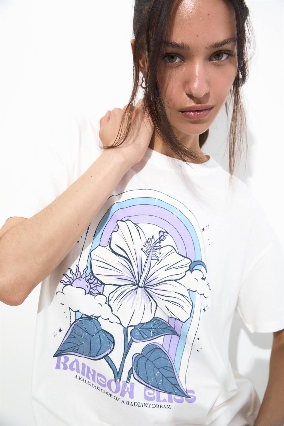 White T-Shirt With Hibiscus Print Detail On The Front And ‘Tropical Hibiscus’ Slogan, Short Sleeves And A Round Neckline. Made Of 100% Cotton. Composi…