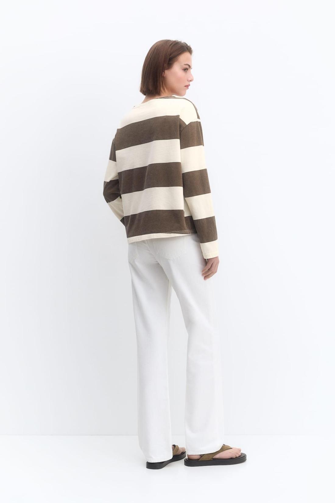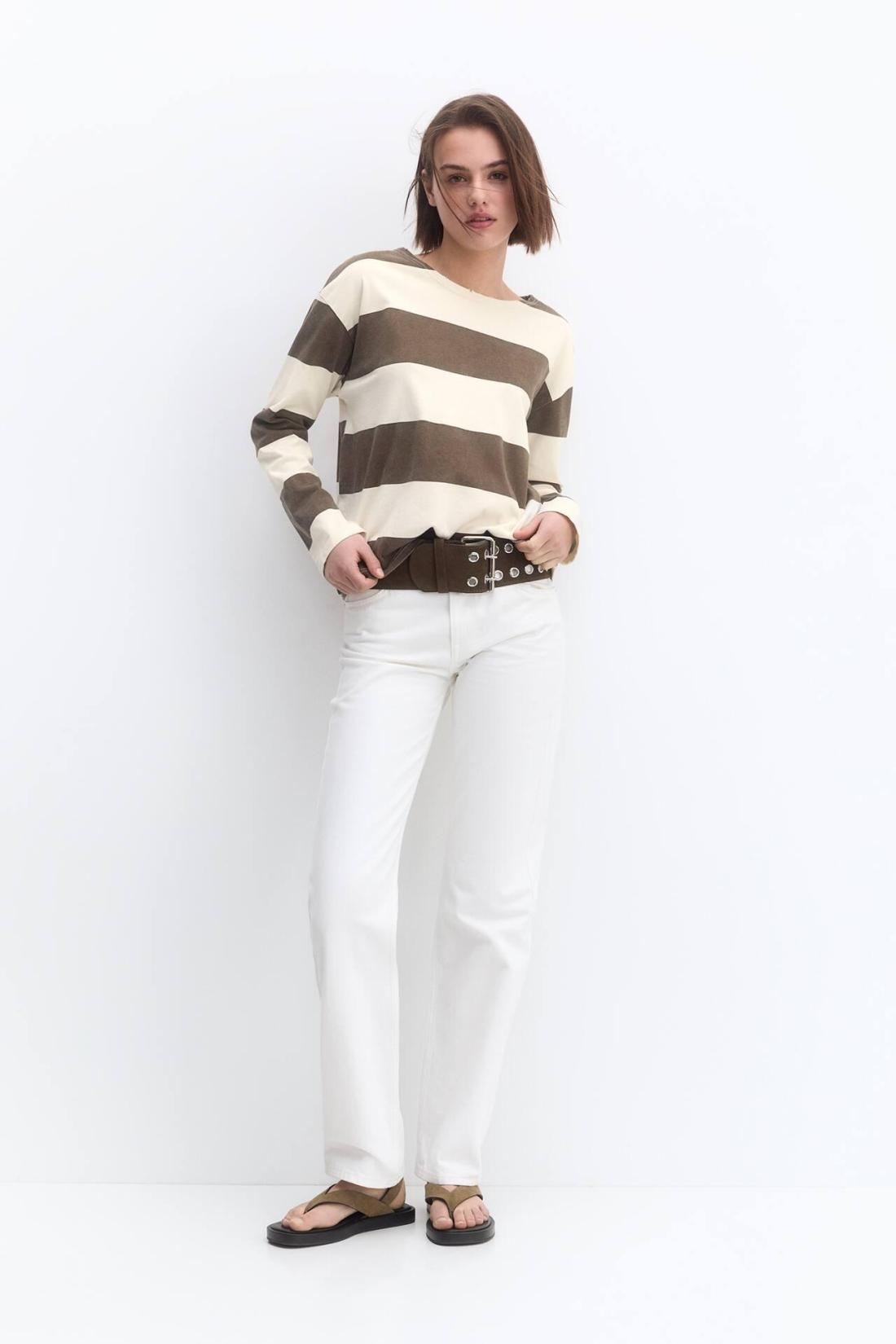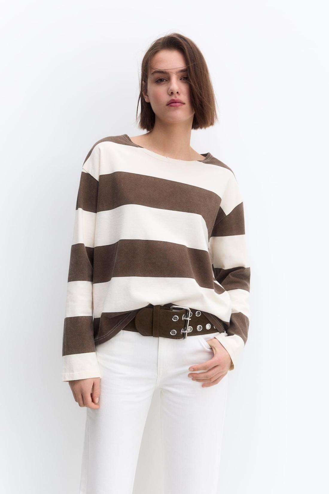 Long Sleeve T-Shirt With A Round Collar And Striped Print. Made Of Cotton. Composición