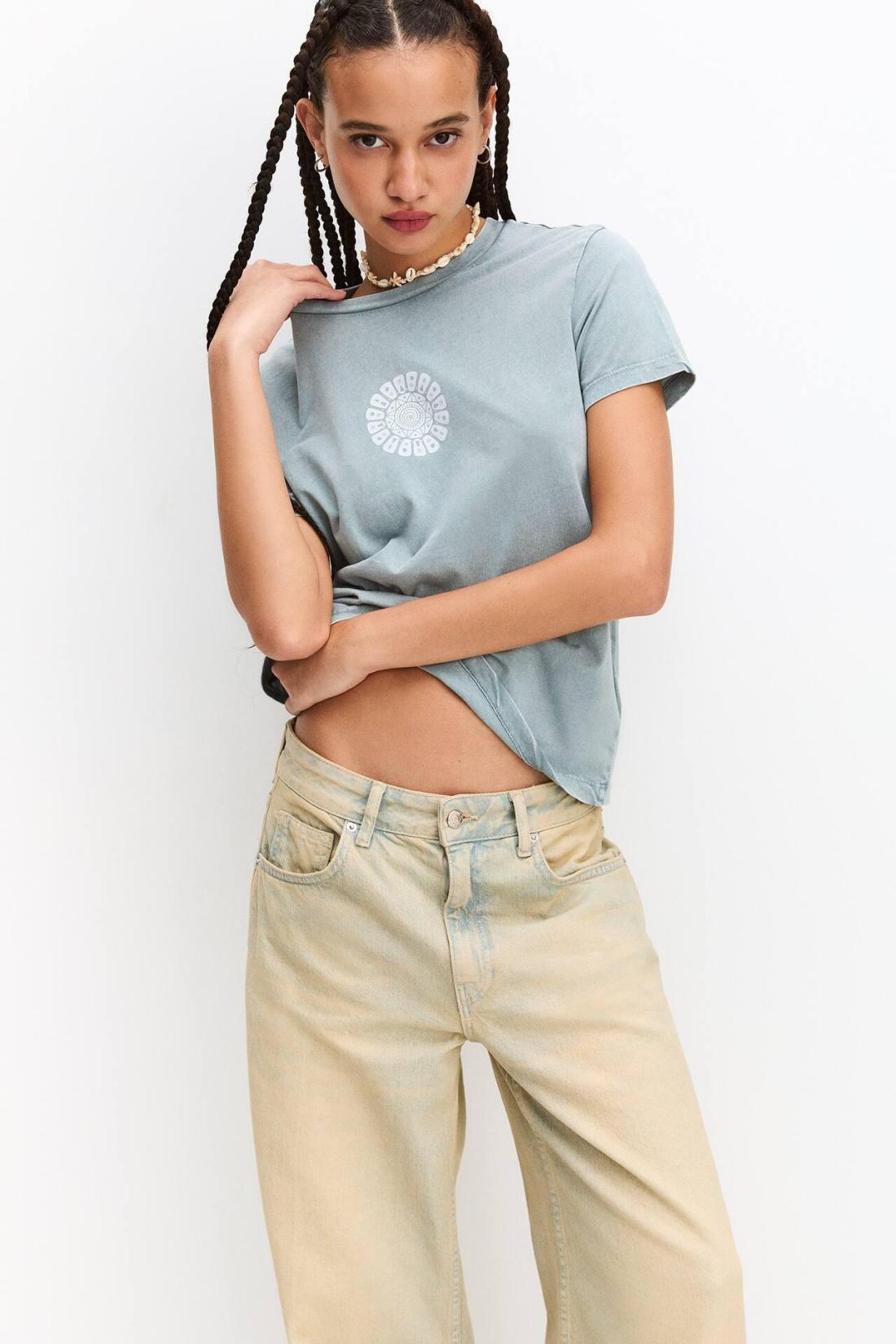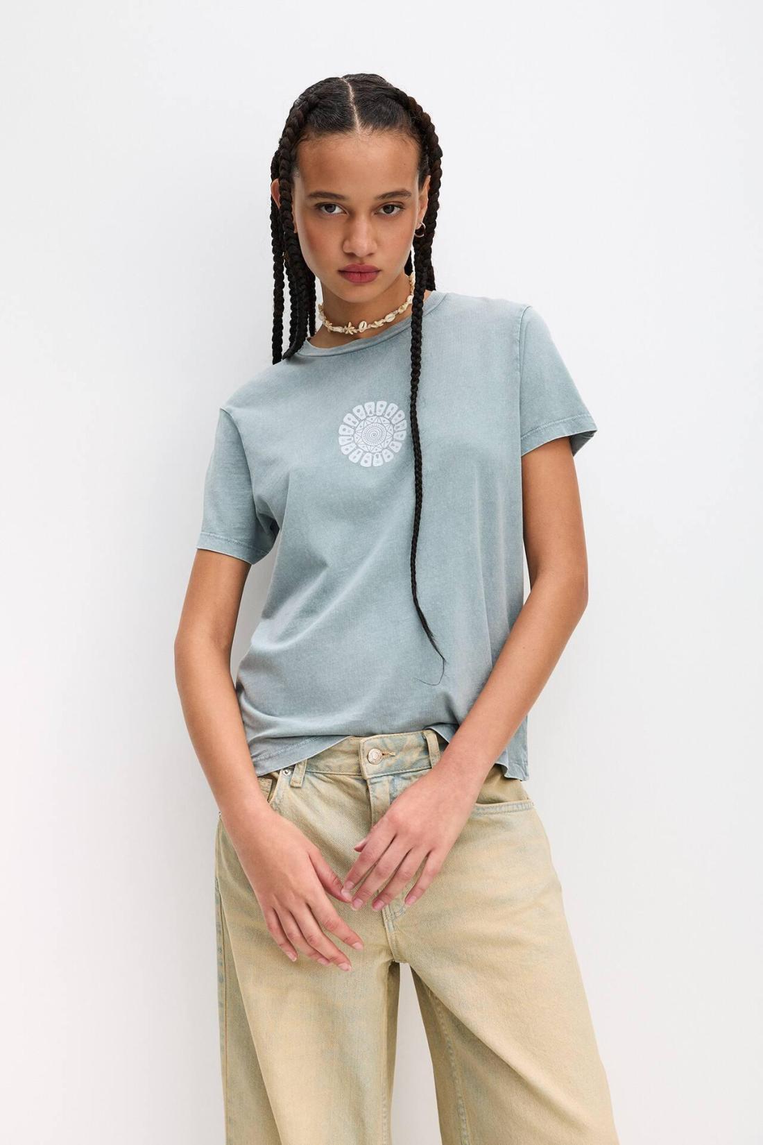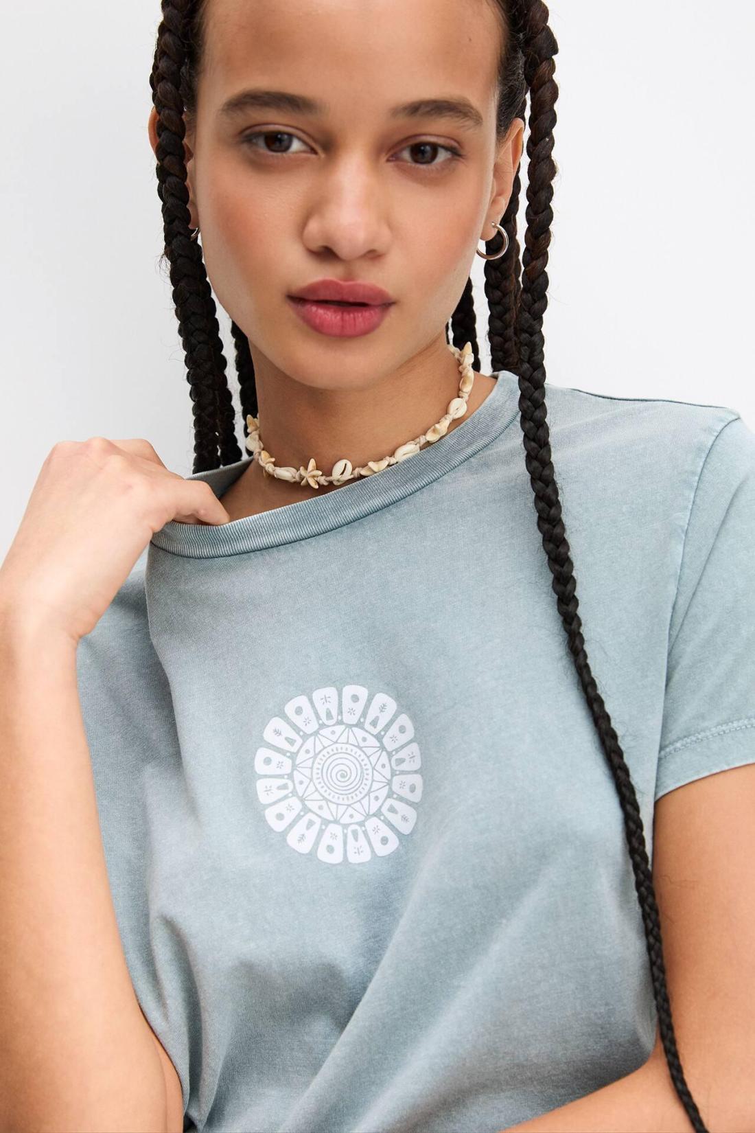 Short Sleeve T-Shirt With A Crew Neck And A Mandala Graphic Detail. Made Of 100% Cotton. Composición