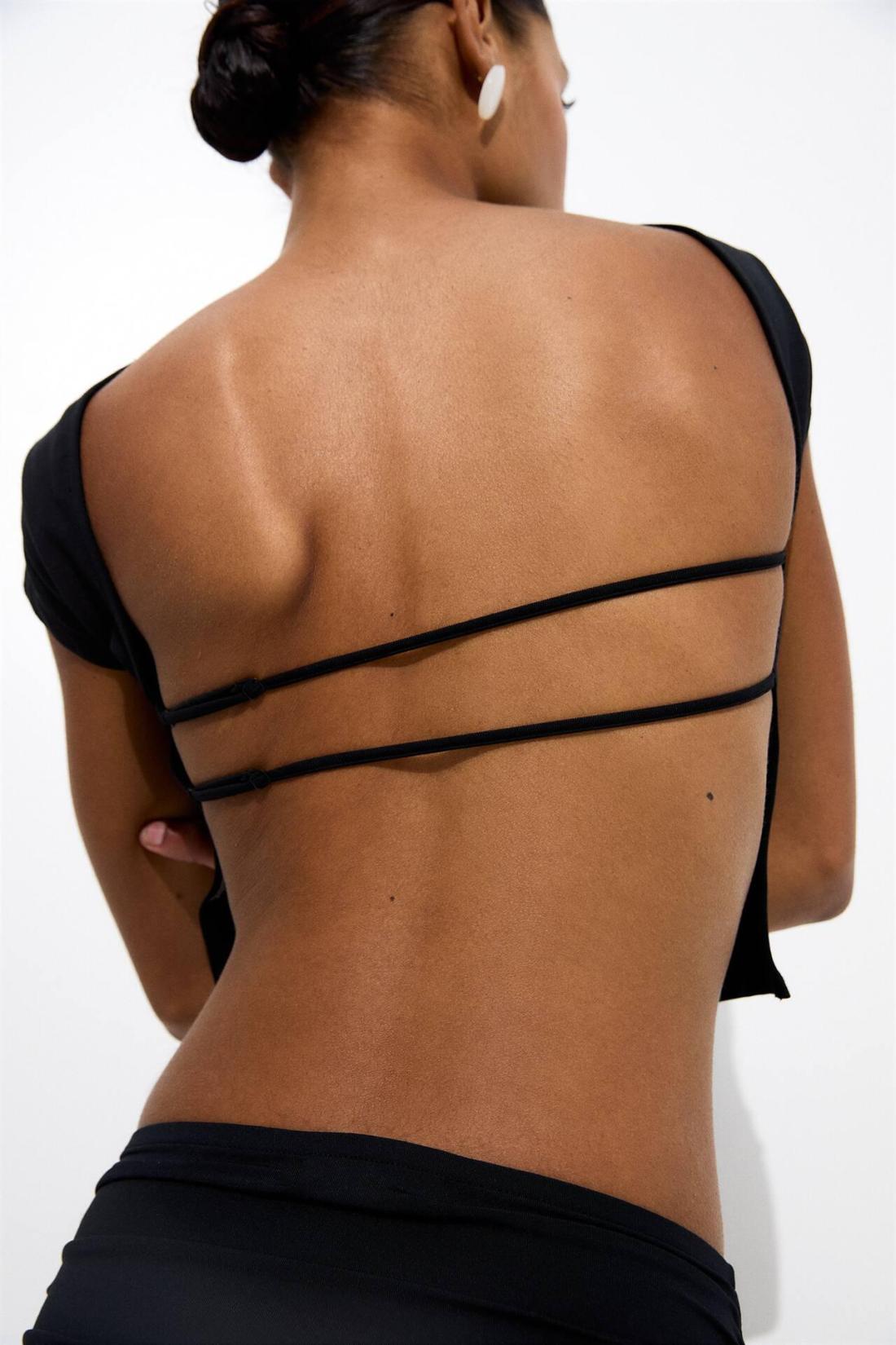 Short Sleeve Cropped T-Shirt With An Open Back. Made Of Slightly Stretchy Polyamide Fabric.