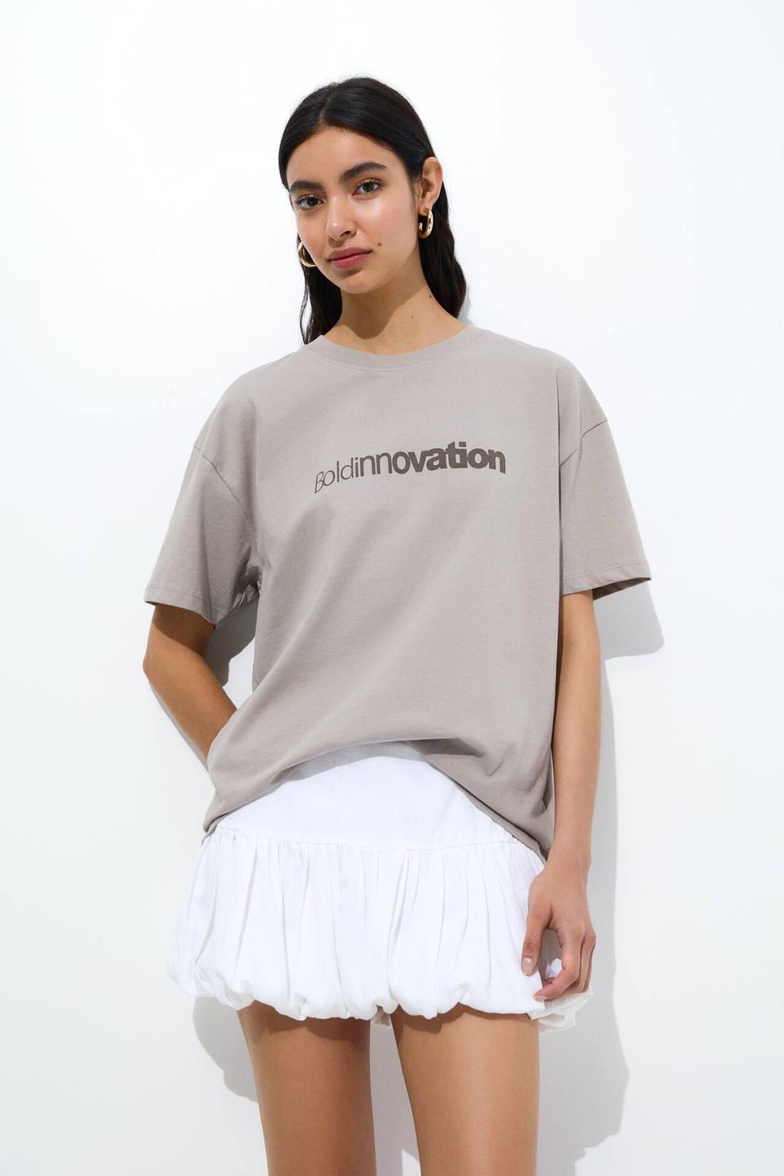 Oversized T-Shirt With A ‘Boldinnovation’ Slogan, Short Sleeves And A Round Neckline. Made Of 100% Cotton. Composición
