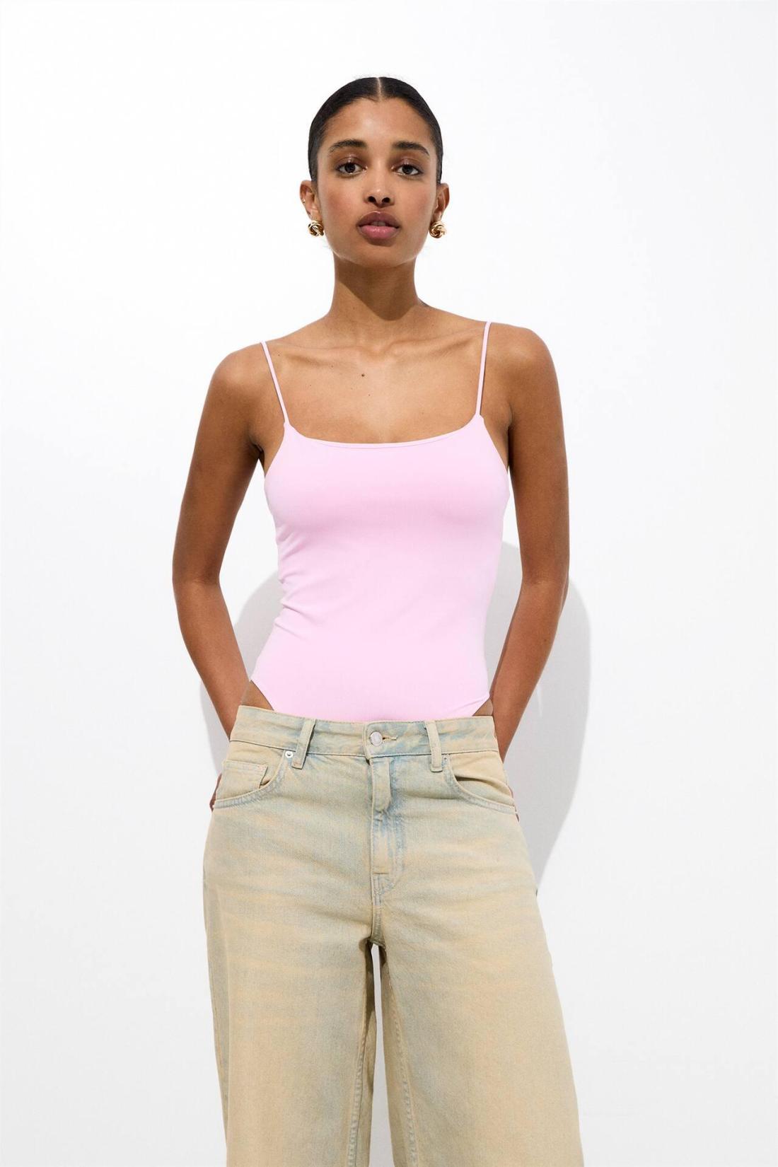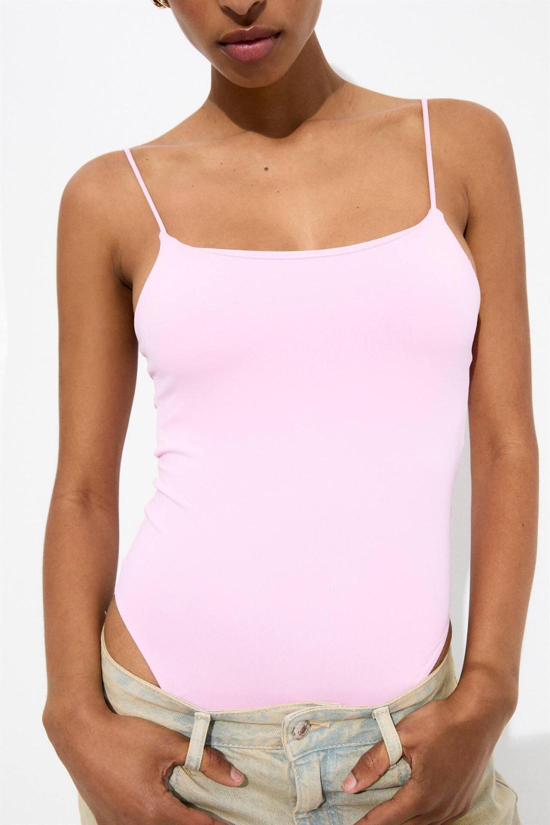 Strappy Polyamide Bodysuit Pink | Women Bodysuits