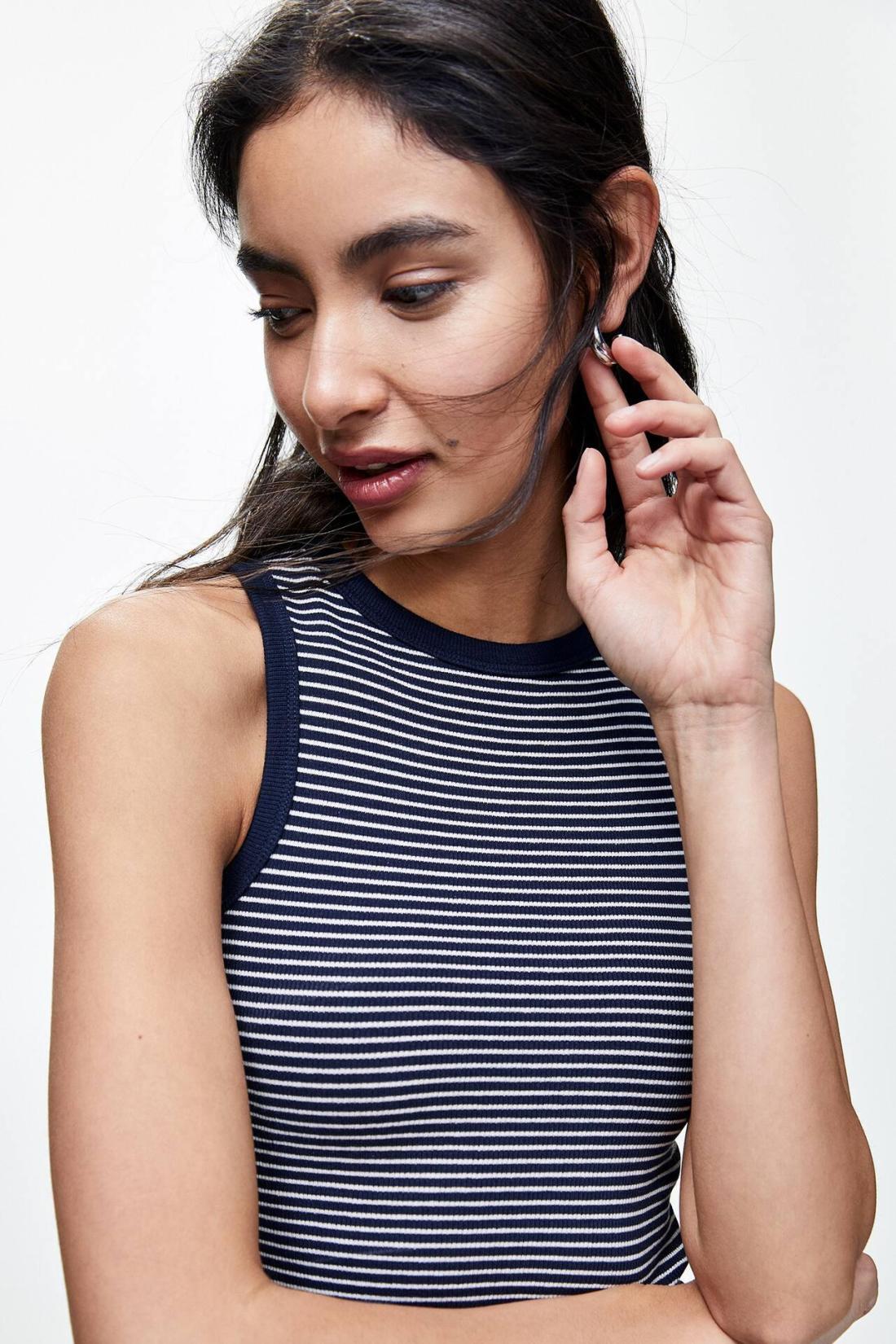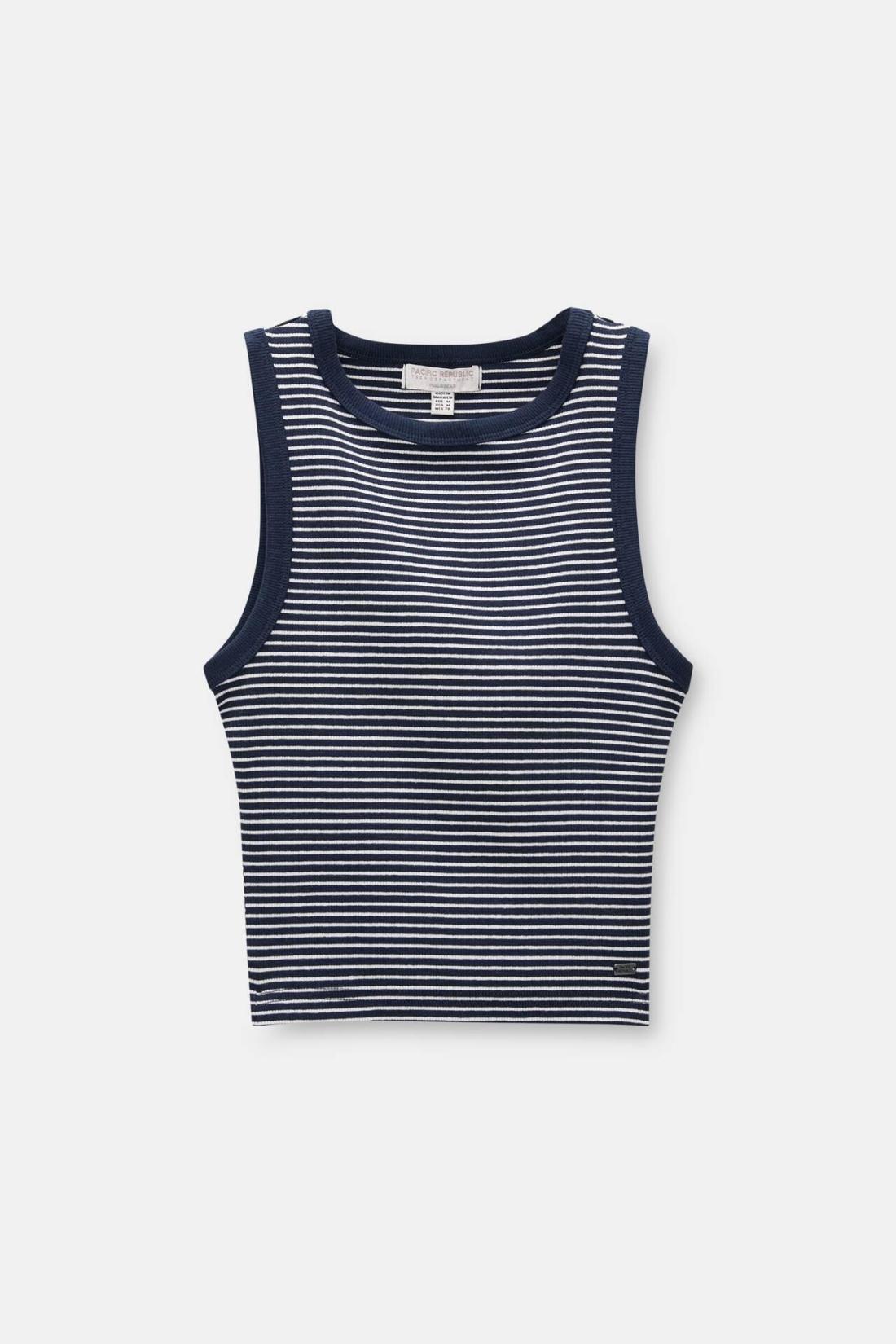 Crew Neck Sleeveless Tank Top With A Striped Print. Made Of Stretch Fabric. Available In Several Colors. Composición