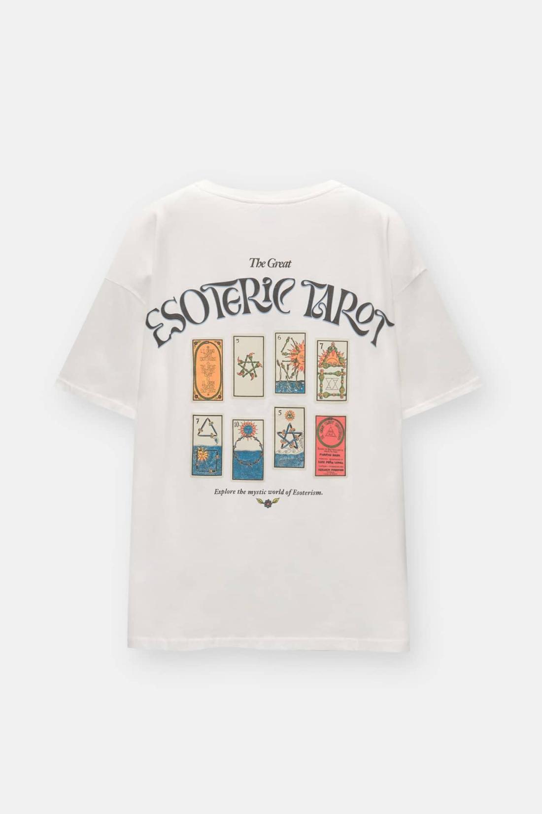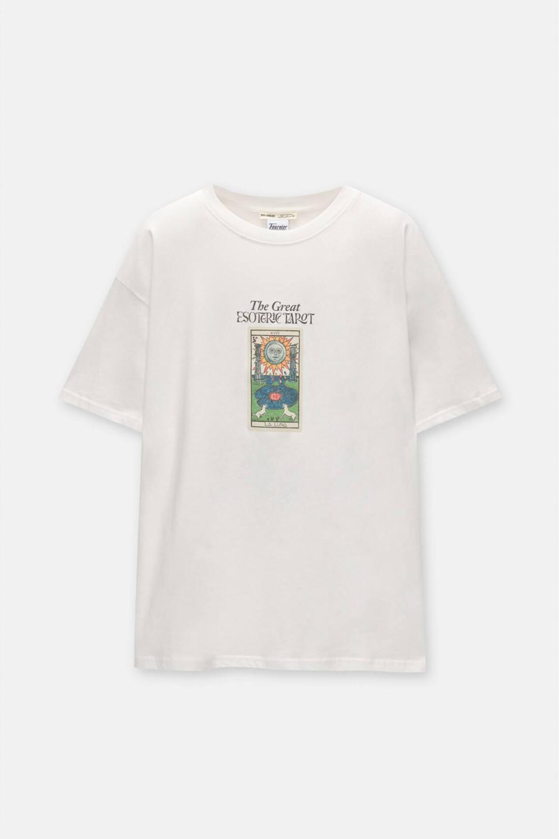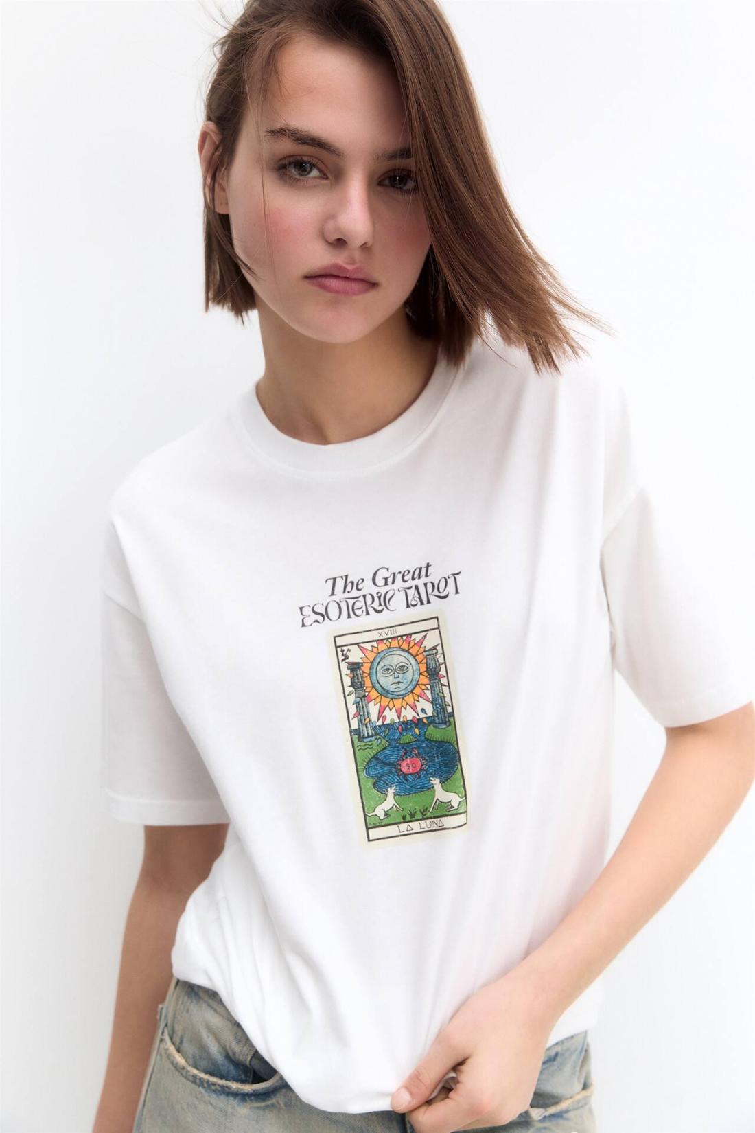 Short Sleeve Round Collar T-Shirt With A Tarot Graphic. Made Of Cotton. Composición