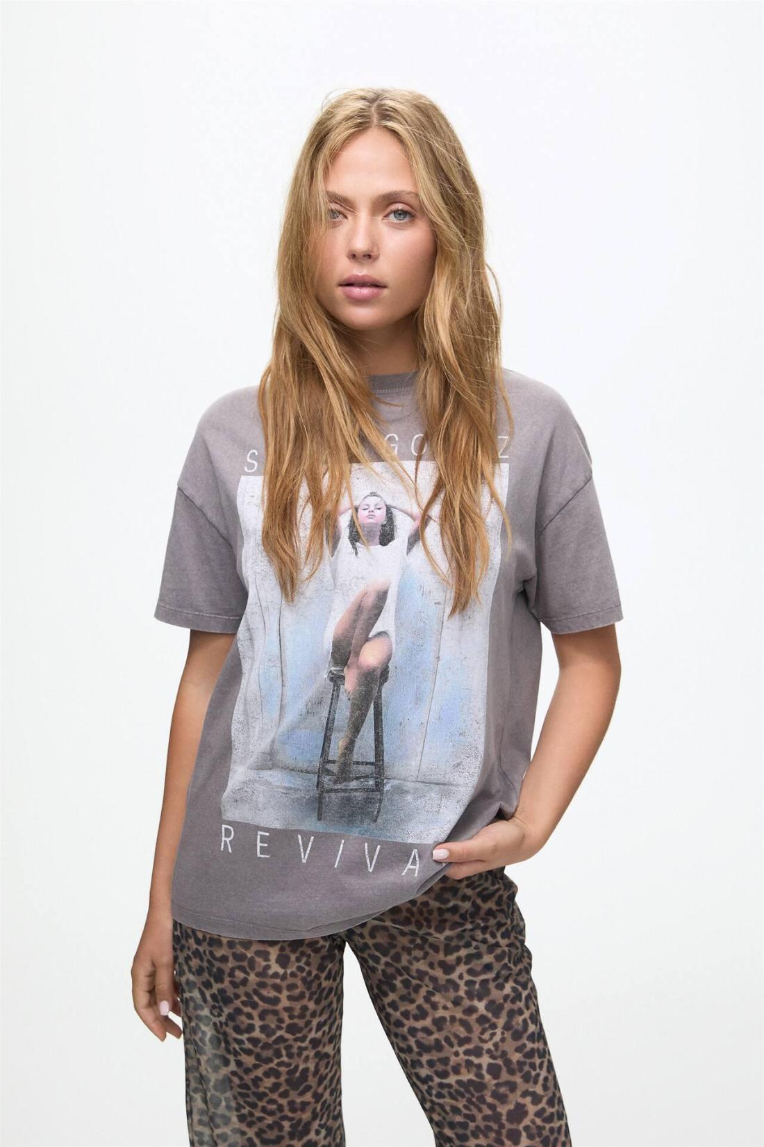 Selena Gomez License T-Shirt With Short Sleeves And A Crew Neck. Made Of Washed Cotton. Composición